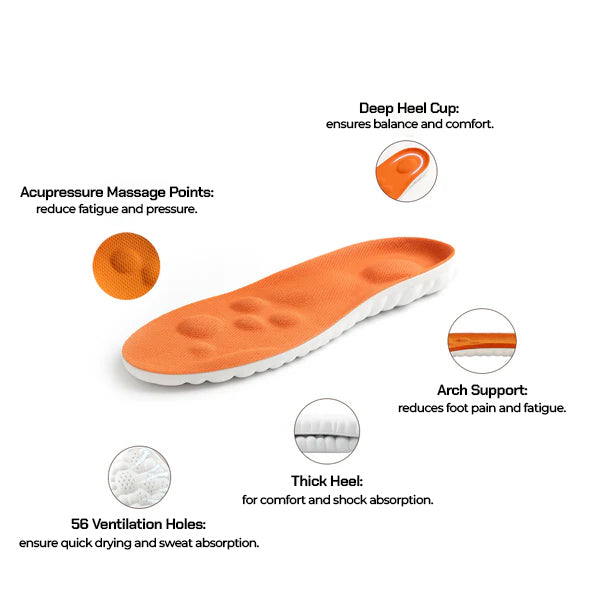 Our insoles with cushioning layer and strong arch support reduce stress on joints, improve posture, and restore comfort to your everyday steps.